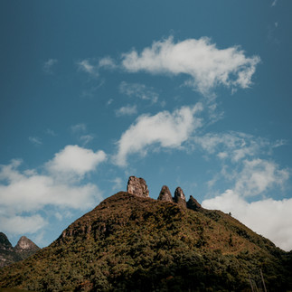 quatro formações rochosas de arenito Botucatu com cerca de 90 metros de altura, alinhadas lado a lado como sentinelas da montanha.